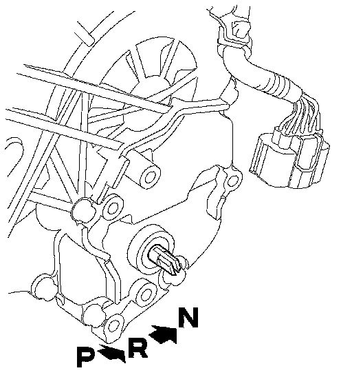 6. Make sure the selector control shaft is in the N position. If necessary, move the shift lever from P to N.