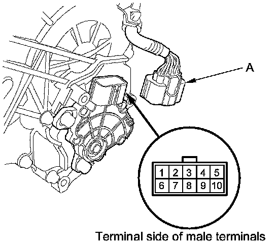 2. Check for continuity between the terminals at the subharness connector. There should be continuity between the terminals in the following table for each shift lever position.