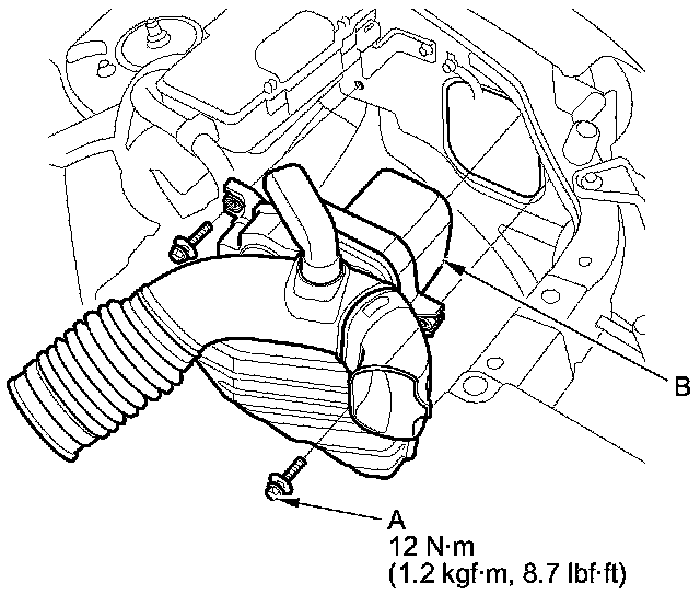 4. Remove the intake air resonator (B).