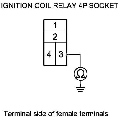 11. Check for continuity between ignition coil relay 4P socket terminal No. 3 and body ground.