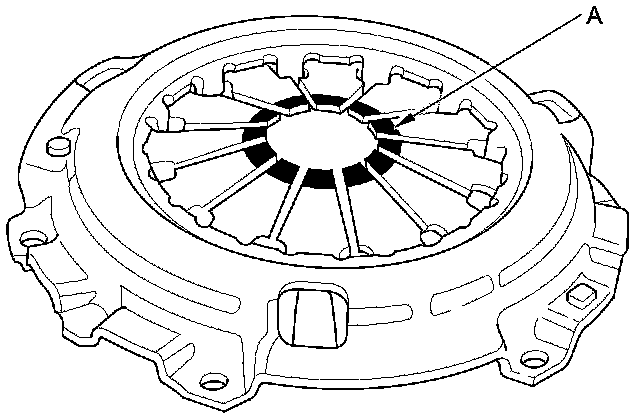 5. Inspect the fingers of the diaphragm spring (A) for wear at the release bearing contact area.