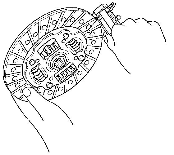 10. Measure the clutch disc thickness. If the measurement is less than the service limit, replace the clutch disc.