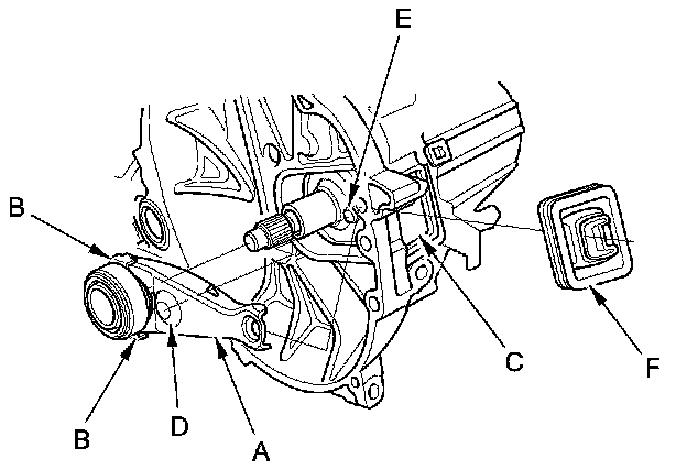 8. Install the release fork boot (F). Make sure the boot seals around the release fork and the clutch housing.