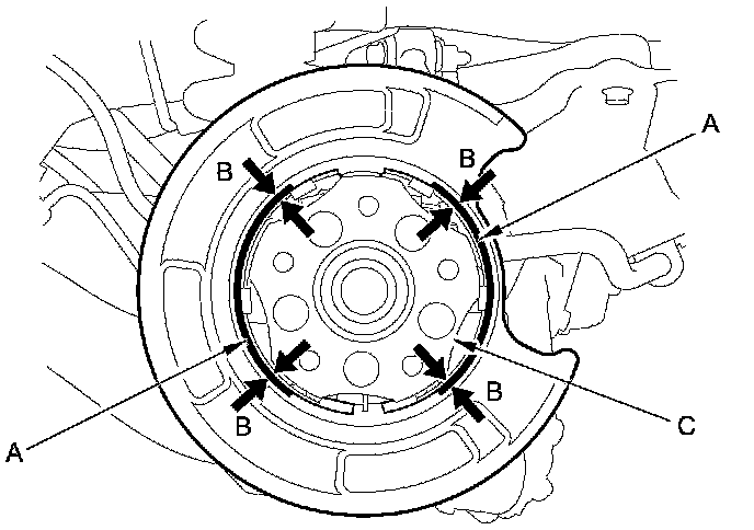 7. Check the bearings in the wheel bearing unit (C) for smooth operation. If it requires servicing, replace the wheel bearing unit Service and Repair.