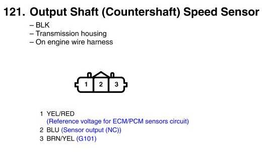 Output Shaft (Countershaft) Speed Sensor Connector View