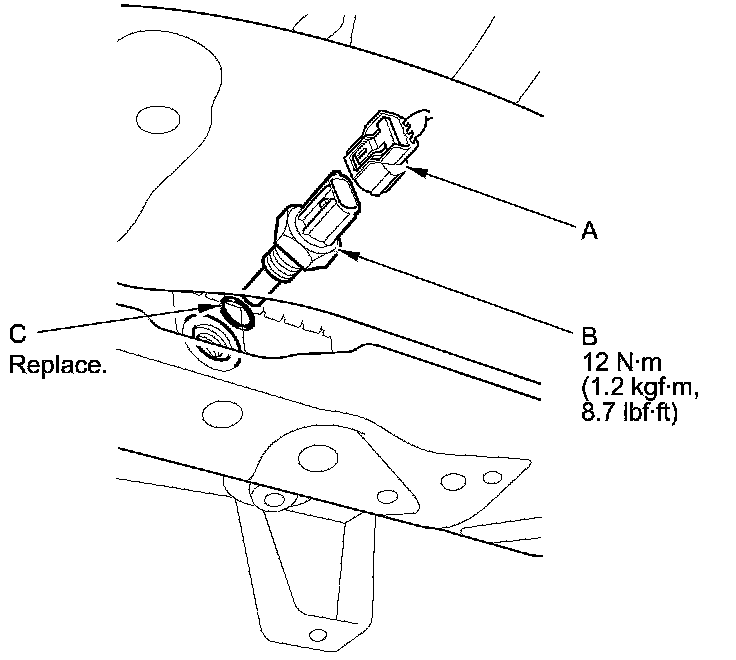 5. Install the parts in the reverse order of removal with a new O-ring (C) coated with clean engine oil, then refill the radiator with engine coolant Service and Repair.