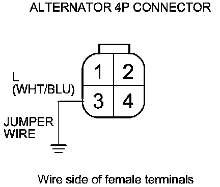 17. Connect alternator 4P connector terminal No. 3 and body ground with a jumper wire.