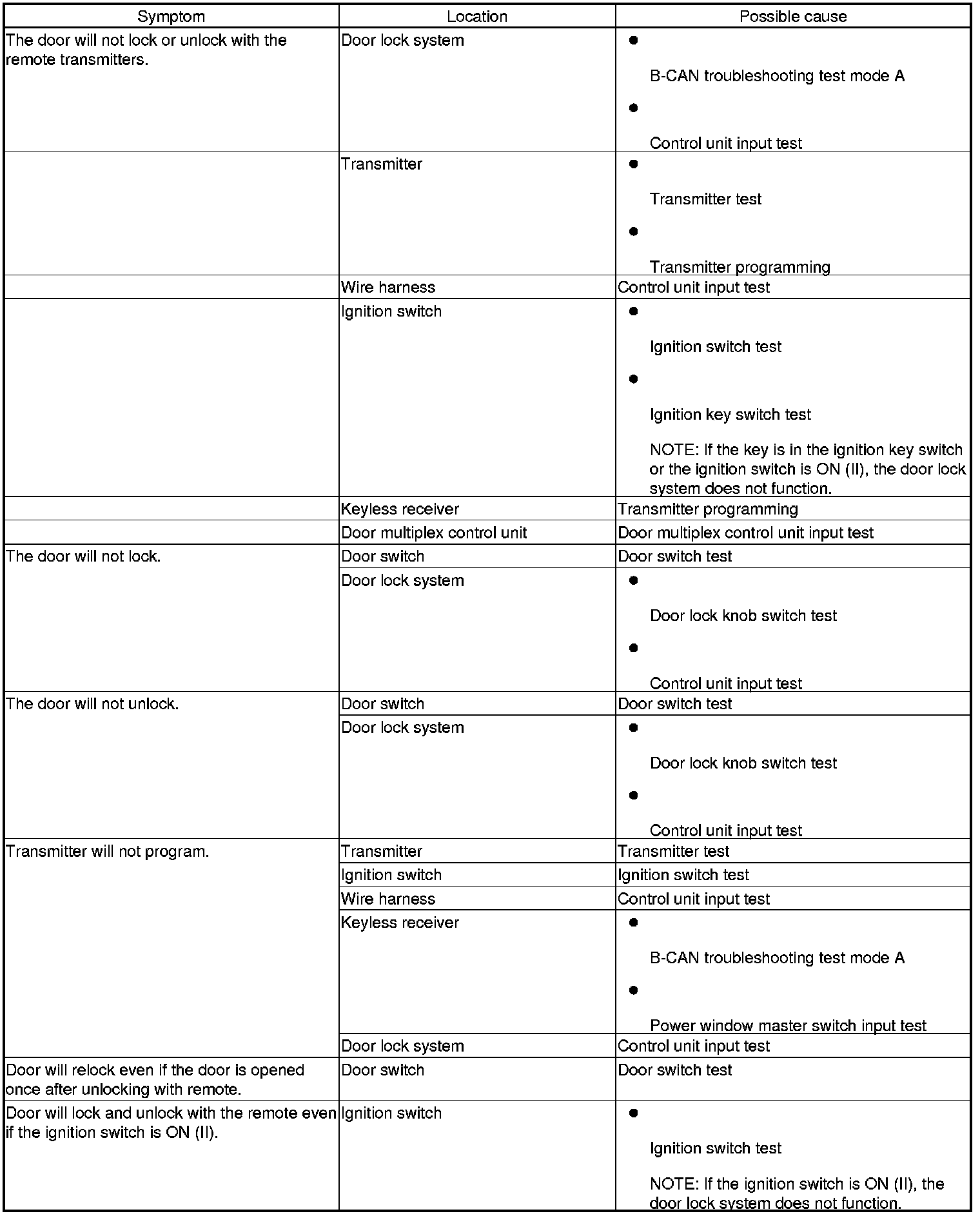 Keyless/Power Door Locks/Security System Symptom Troubleshooting