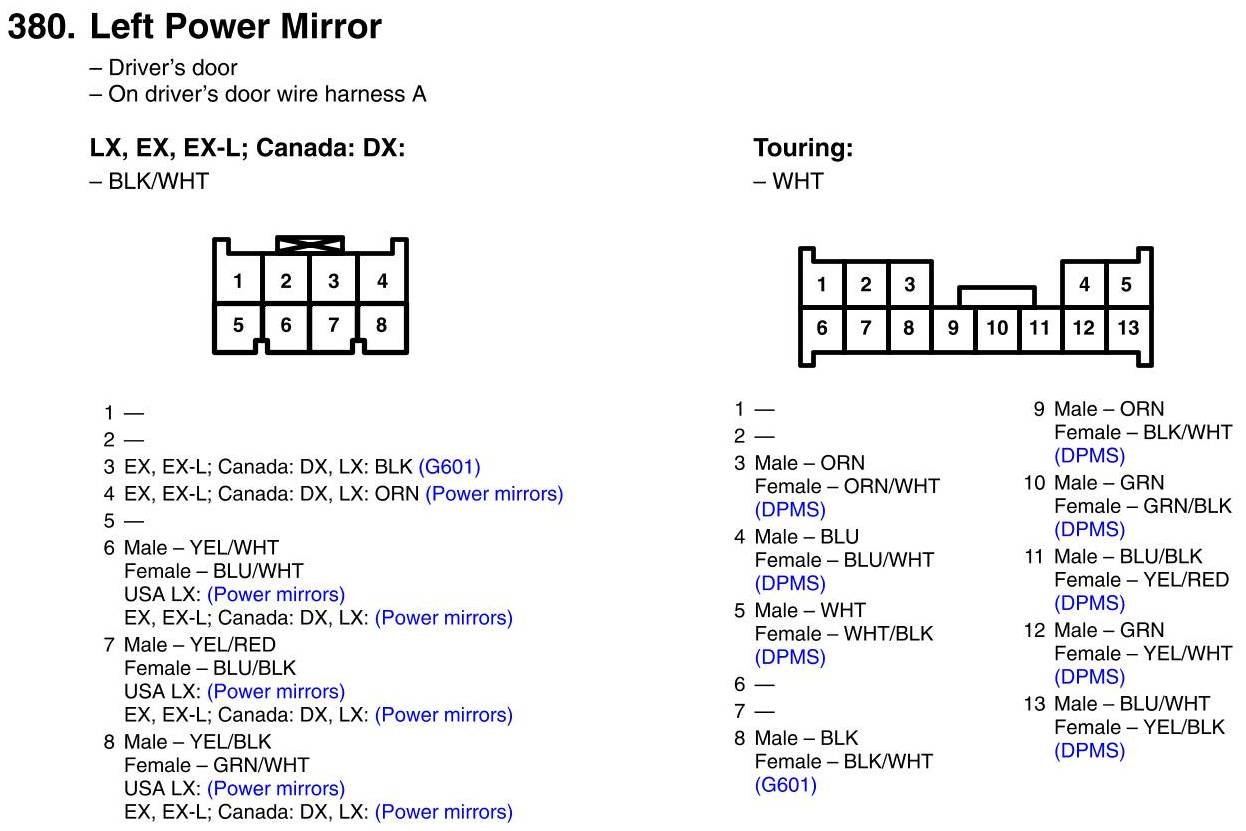 Left Power Mirror Connector View