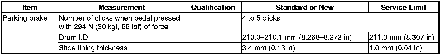 Parking Brake System: Specifications