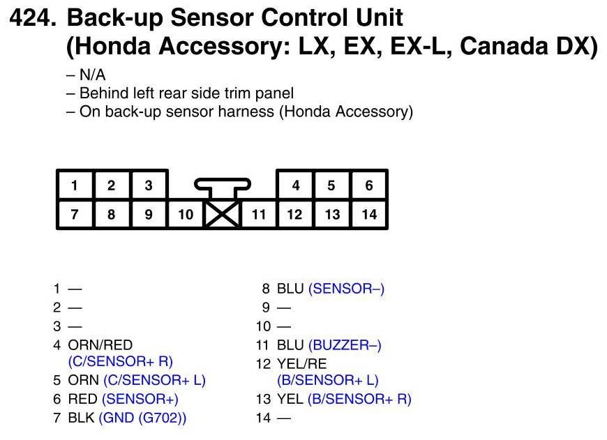 Back-Up Sensor Control Unit Connector View (Honda Accessory: LX, EX, EX-L, Canada DX)