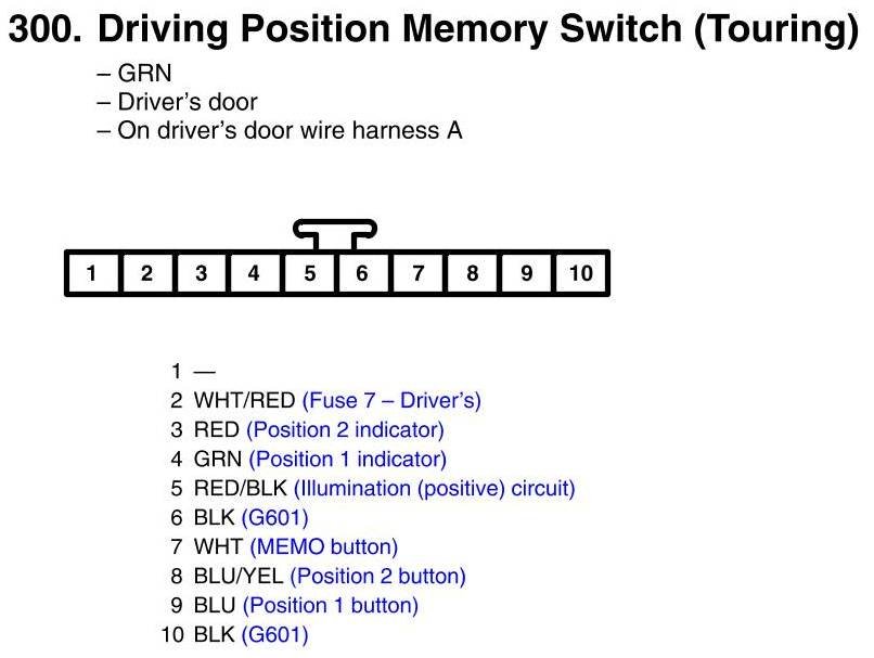 View 300 - Driving Position Memory Switch Connector View (Touring)