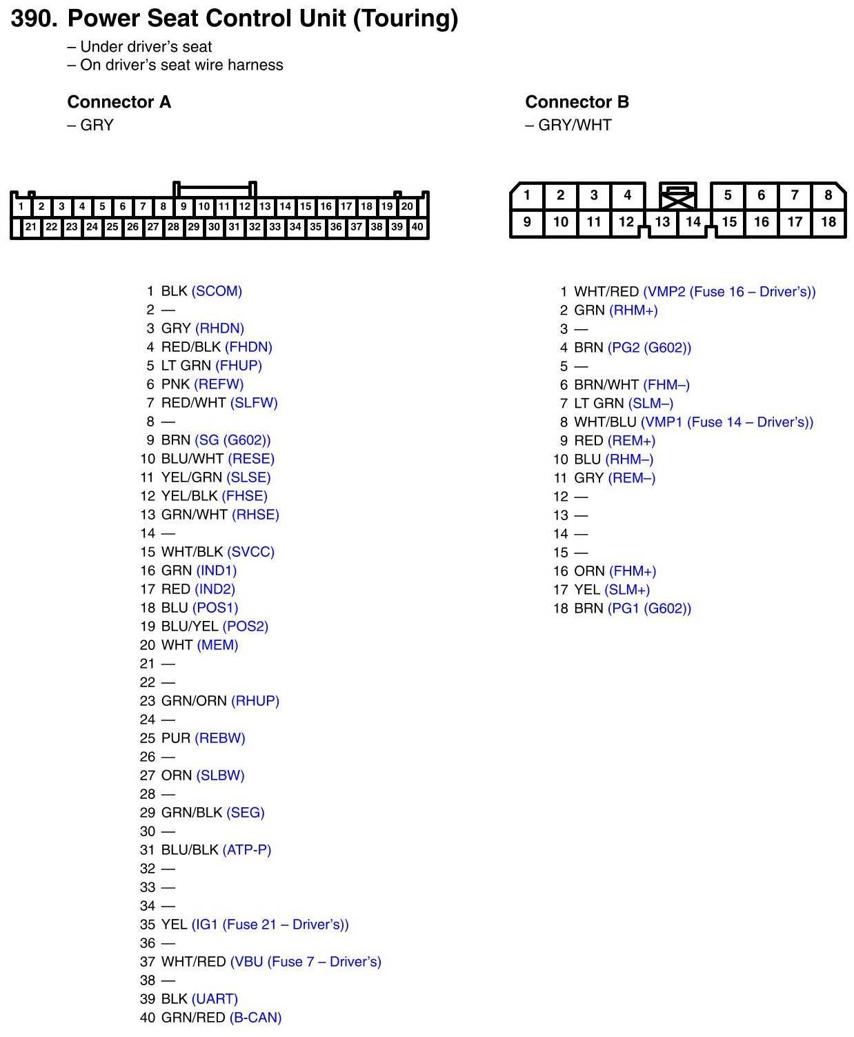 View 390 - Power Seat Control Unit Connector View (Touring)