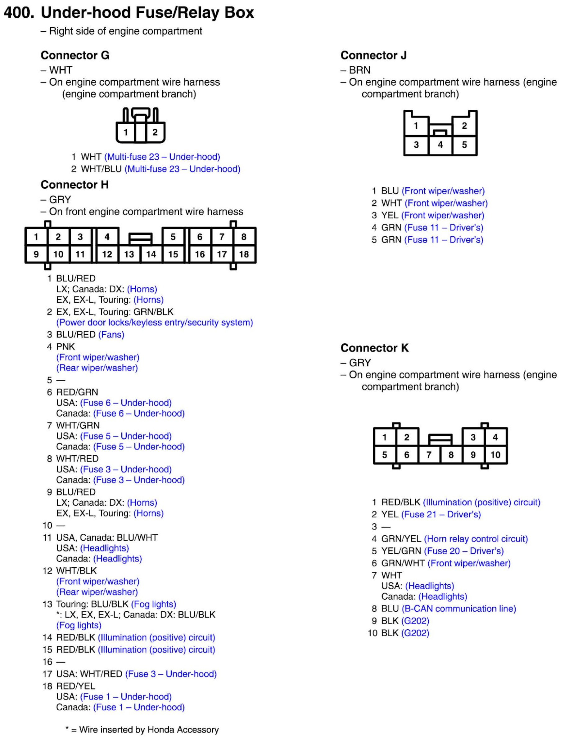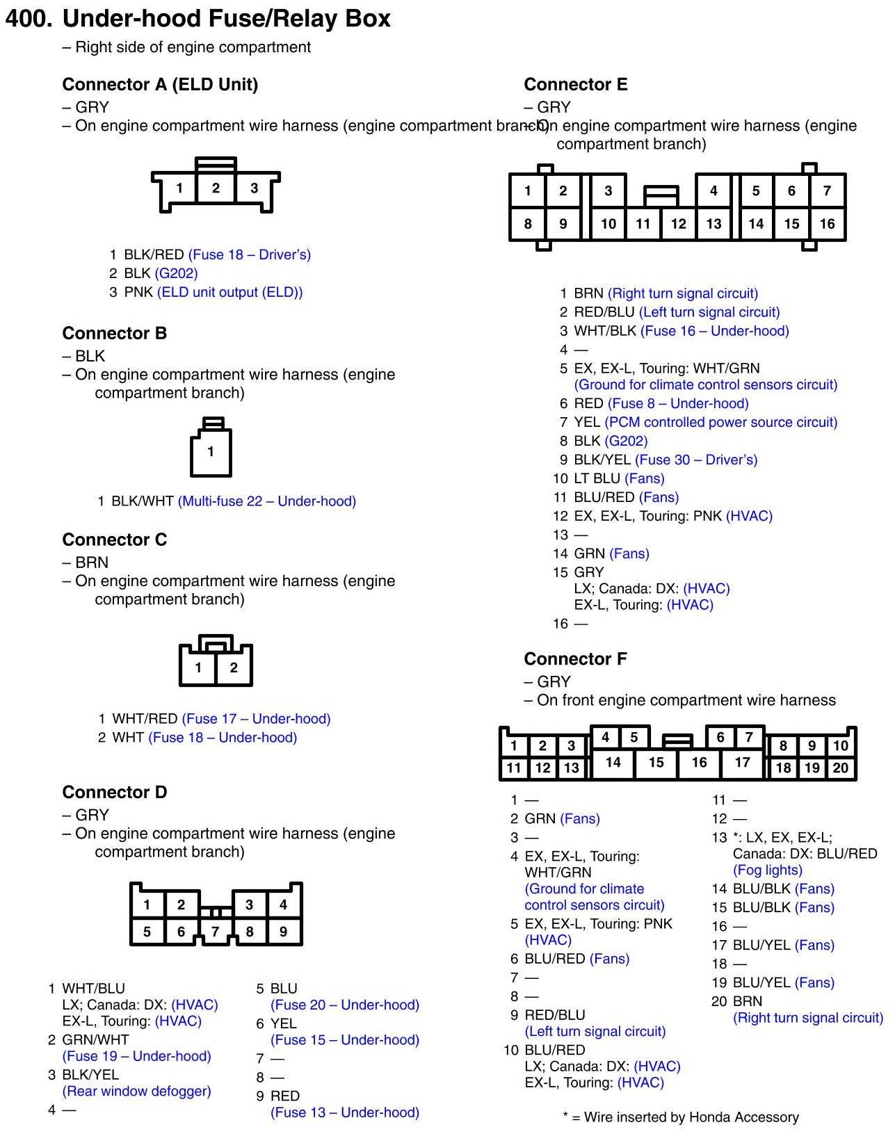 View 400 - Under-hood Fuse/Relay Box Connector View