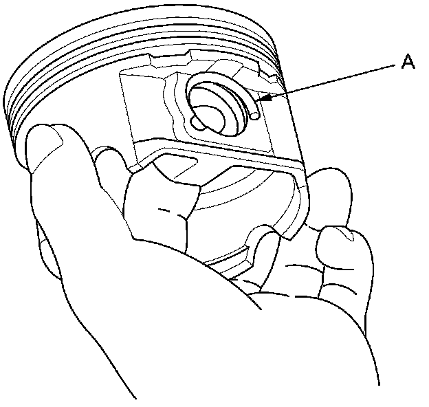 1. Install a piston pin snap ring (A) only on one side.