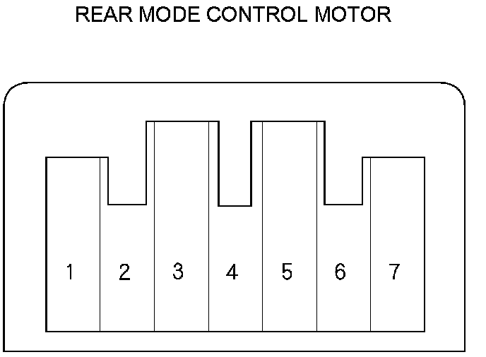 7. If either the resistance or voltage readings are not as specified, replace the rear mode control motor Rear Mode Control Motor Replacement.
