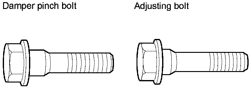 - The camber angle can be adjusted up to ±20' (center of tolerance) by replacing one damper pinch bolt with the adjusting bolt.
