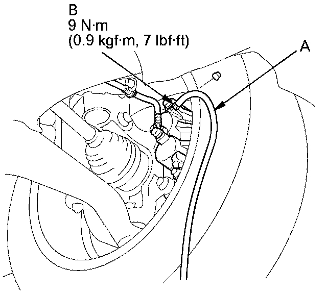 4. Attach a length of clear drain tube (A) to the bleed screw (B), then loosen the bleed screw to allow air to escape from the system. Then tighten the bleed screw securely.