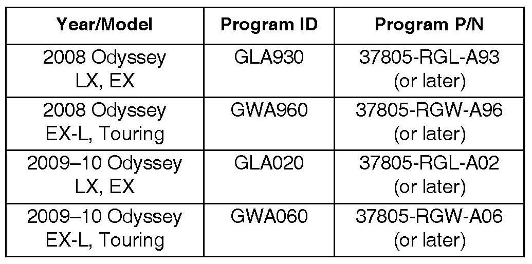 Update the PGM-FI software with the HDS. Refer to Service Bulletin 01-023, Updating Control Units/Modules.