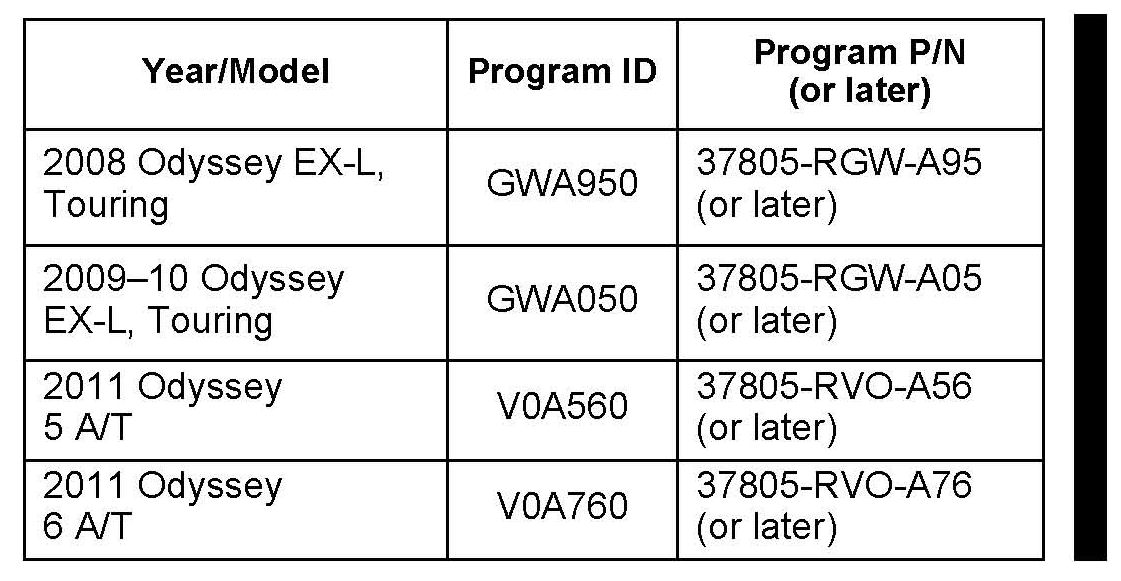 *2011 Odyssey - From VIN 5FNRL5H..BB000001 thru 5FNRL5H..BB061689*