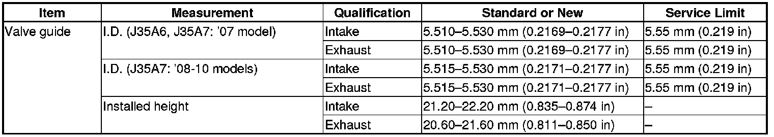 Valve Guide Specifications