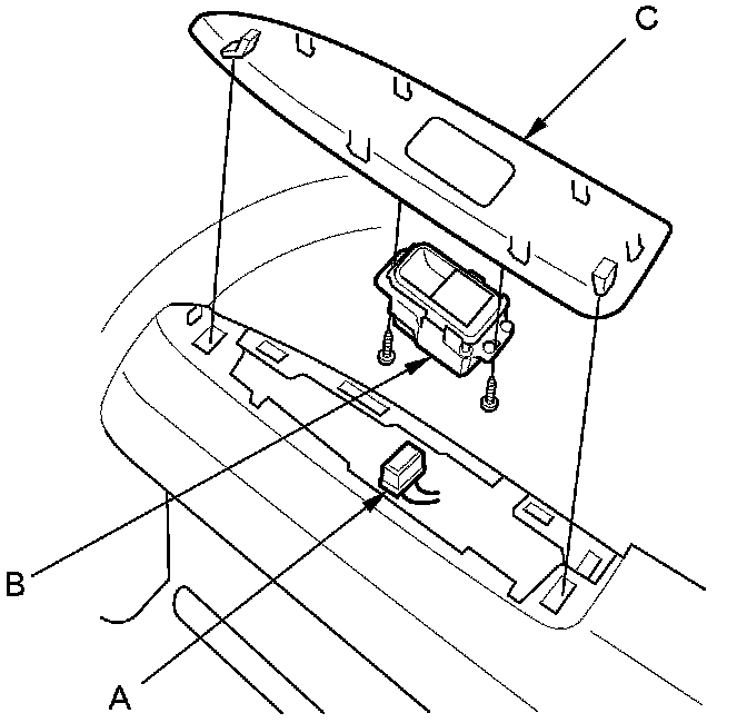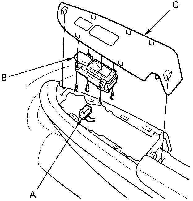 3. Remove the two mounting screws, then remove the power window switch from the switch panel (C).