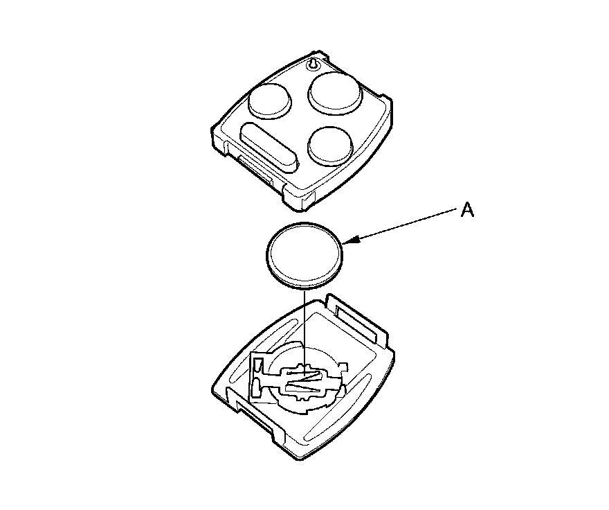 4. Replace the transmitter battery (A) with a new one, and try to lock and unlock the doors with the transmitter by pressing the lock or unlock button at least 10 times.