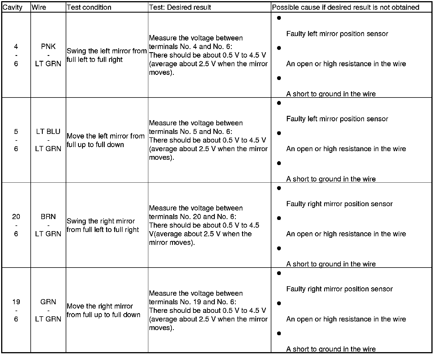 Power Mirror Control Unit Input Test/Replacement
