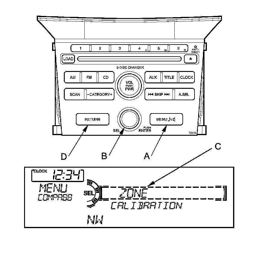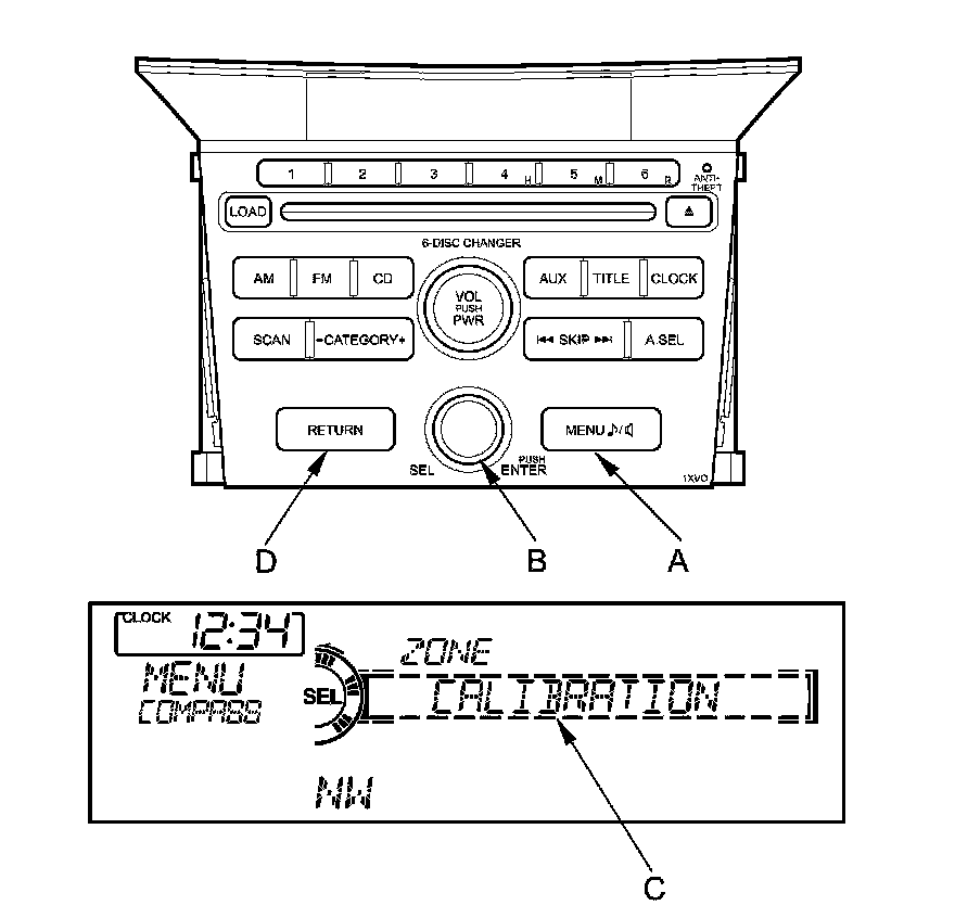 NOTE: If necessary, press the RETURN button (D) to return to the previous display. Pressing the MENU button cancels the compass setting mode.