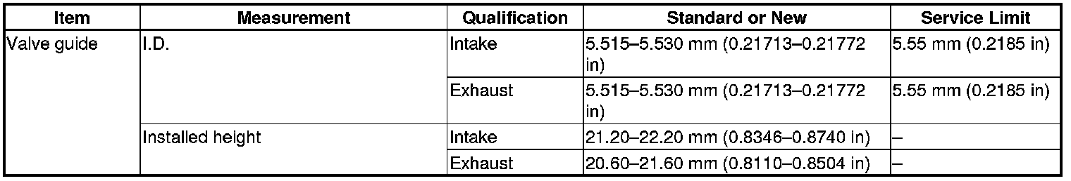 Valve Guide Specification(s)
