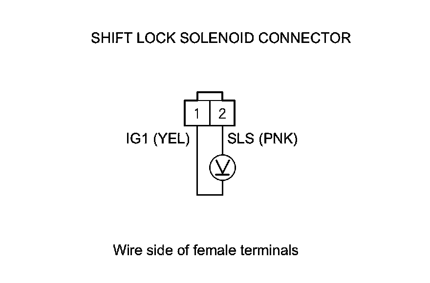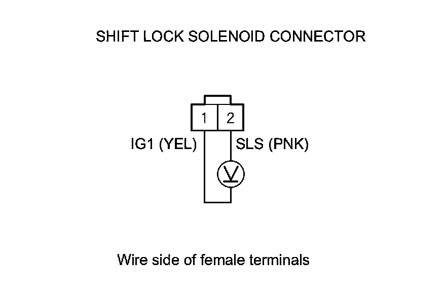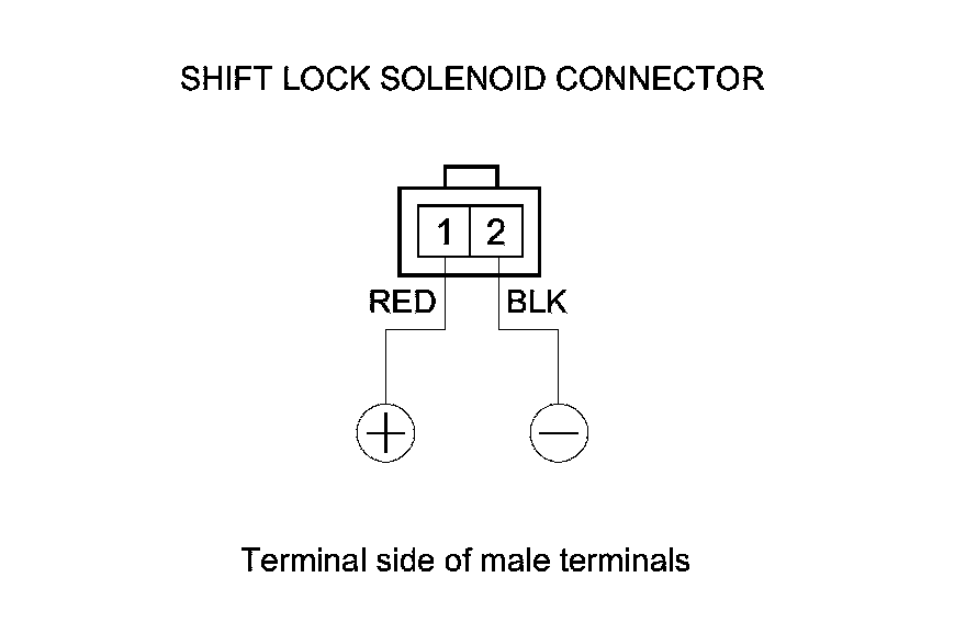 NOTE: Do not connect the positive battery terminal to the connector terminal No. 2 or you will damage the diode inside the shift lock solenoid.