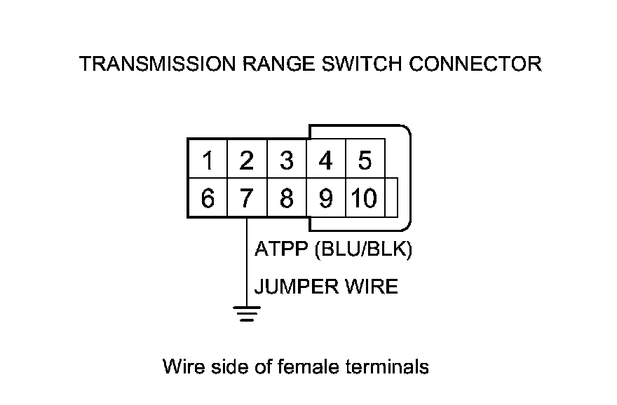 23. Using a jumper wire, jump the transmission range switch connector terminal No. 7 and body ground.