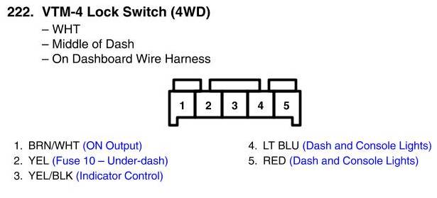 View 222 - VTM-4 Lock Switch Connector View (4WD)