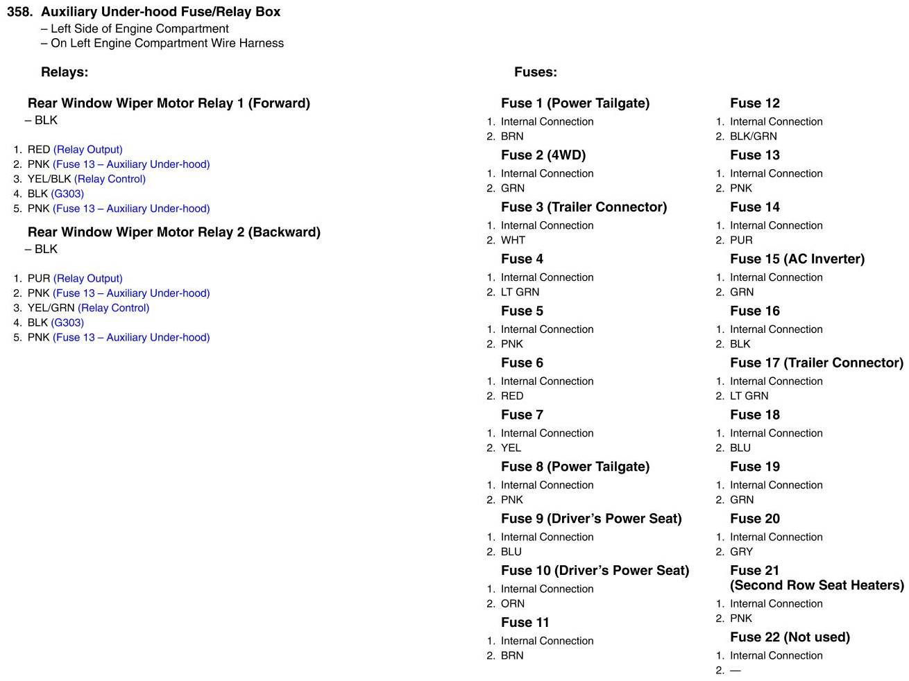 View 358 - Auxiliary Under-Hood Fuse/Relay Box Connector View