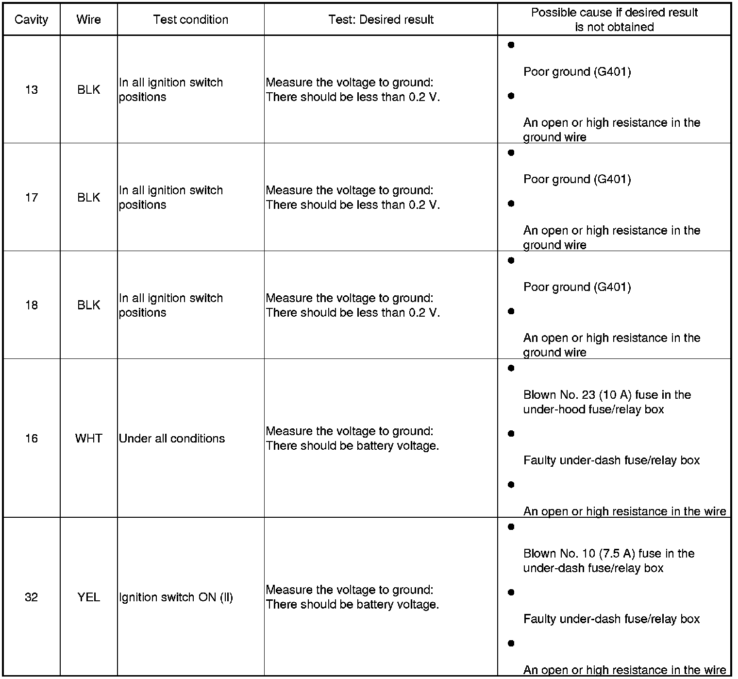 5. Reconnect the 32P connector to the gauge control module, and do the following input tests.