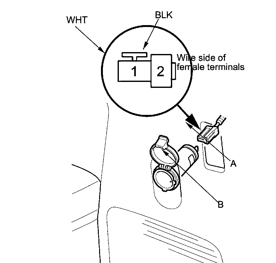 2. Disconnect the 2P connector (A) from the cargo area accessory power socket (B).