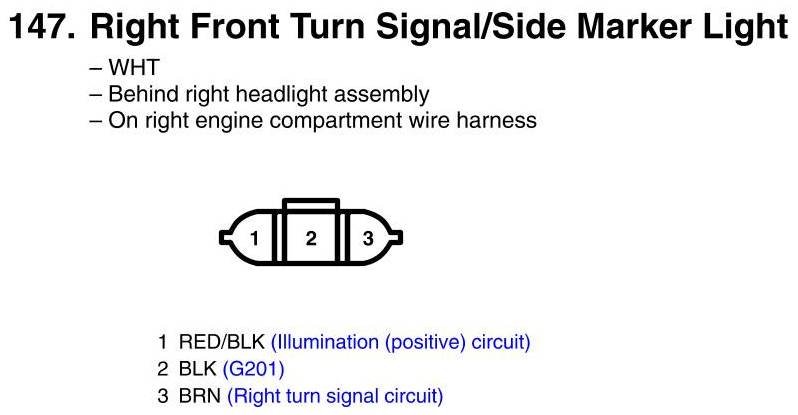 View 147 - Right Front Turn Signal/Side Marker Light Connector View