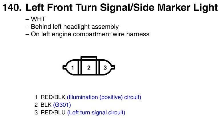 Left Front Turn Signal/Side Marker Light Connector View