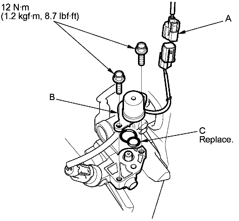 3. Install the parts in the reverse order of removal with a new O-ring (C).