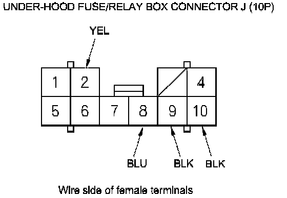 5. Disconnect under-hood fuse/relay box connector J (10P).
