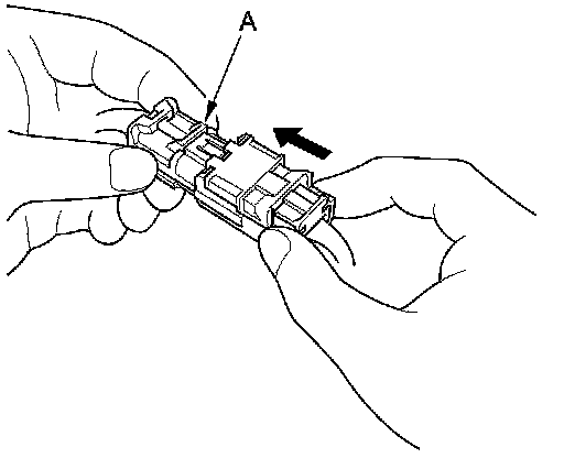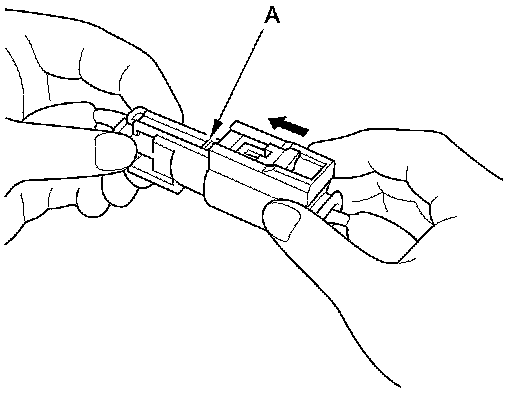 When checking voltage or resistance on this type of connector the first time, you must remove the retainer (A) to insert the tester probe from the wire side.