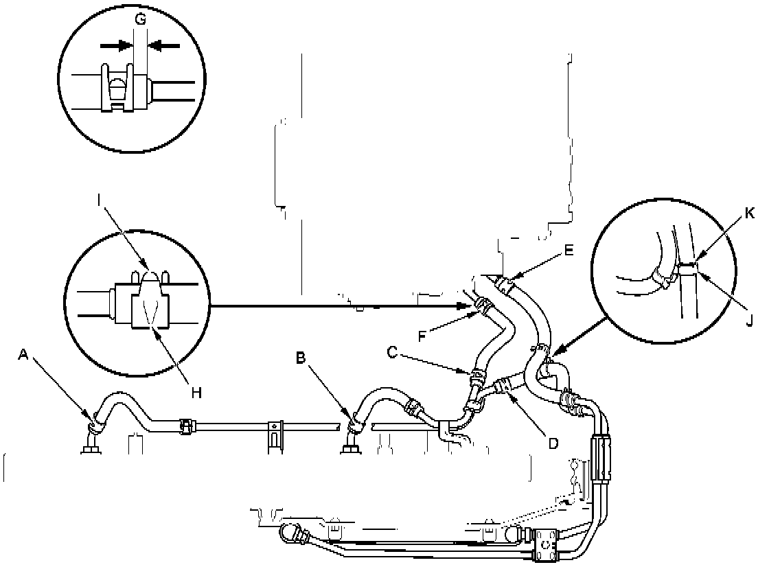 3. Secure the ATF cooler hose with the clamp (J) at the marking (K).