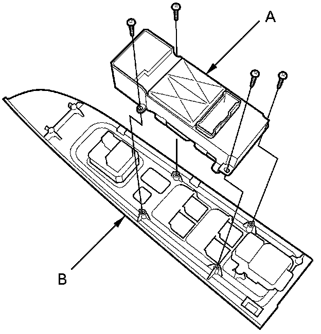 2. Remove the four mounting screws, then remove the master switch (A) from the switch panel (B).