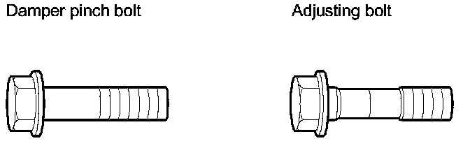 - The camber angle can be adjusted up to ±20 ' (center of tolerance) by replacing one damper pinch bolt with the adjusting bolt.