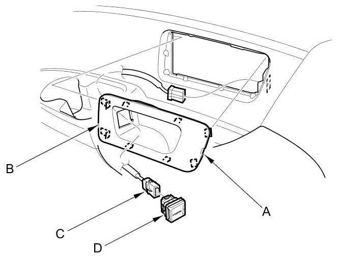 2. Disconnect the connector (C), and remove the HDMI holder (D).