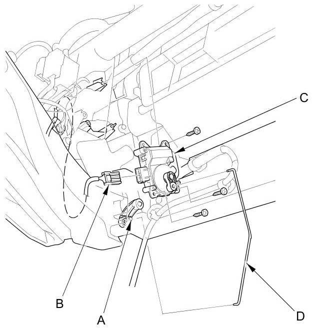 3. Remove the passenger's air mix control motor Passenger's Air Mix Control Motor Replacement (With Climate Control).