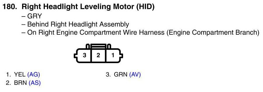 View 180 - Right Headlight Leveling Motor Connector View (HID)