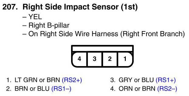 View 207 - Right Side Impact Sensor (1st) Connector View