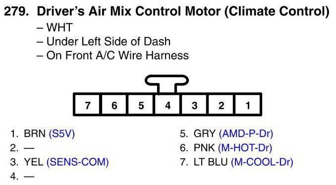 View 279 - Driver's Air Mix Control Motor Connector View (Climate Control)