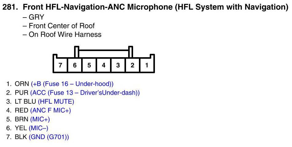 View 281 - Front HFL-Navigation-ANC Microphone Connector View (HFL System With Navigation)